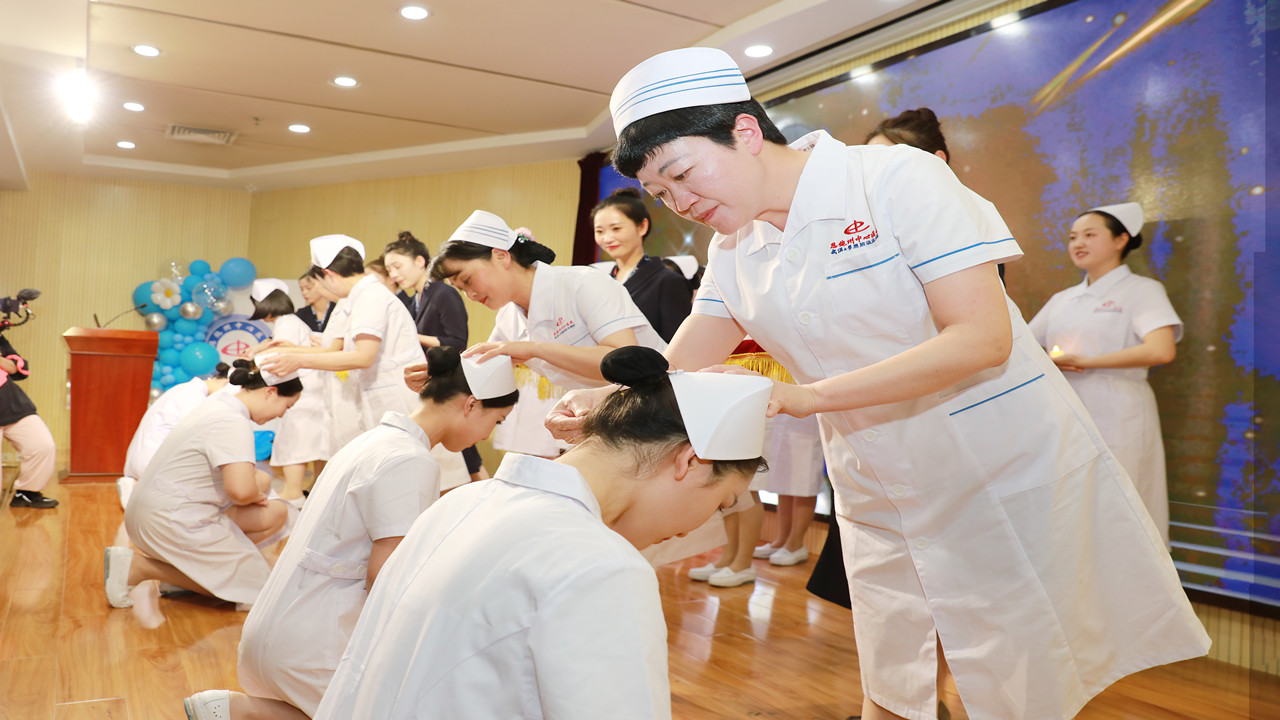 象征圣洁的燕尾帽意味着守护生命的重任,也意味着护理事业的传承与发扬。在一片烛光中,“授帽仪式”正式开始。由护理前辈为20名新护士依次授燕尾帽、传蜡烛。在护理部主任蒋健梅的带领下,新护士齐声宣读南丁格尔誓言:“立志献身护理事业,坚定救死扶伤的信念,以真心、爱心、责任心对待每一位病人”。以爱的名义守护生命的诤诤誓言传遍会场的每一个角落。
