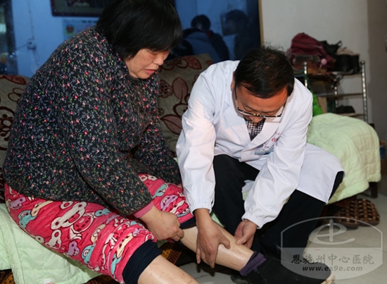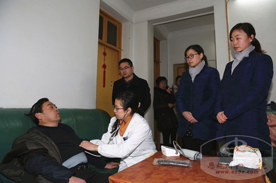 非手术党支部支部书记、内科专家贺建华为患病困难户检查身体