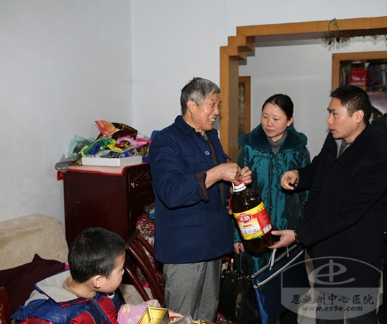 1月中旬以来,在医院党委的号召下,全院5个党支部的党员踊跃捐款,决心像往年一样,帮助部分贫困家庭过个高兴年。1月29日,在《恩施晚报》“帮困难群众过年”活动栏目记者的帮助下,该院党委联系了恩施市民族路社区5户贫困家庭,根据他们的需要准备了过节物资和慰问金。当天,该院除离退休干部党支部外的5个党支部派出代表分别走进困难户家中,为他们送去过年物资、慰问金和新春祝福。