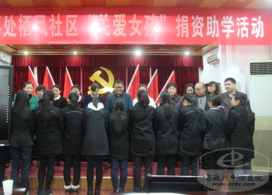 12月3日,州中心医院积极参与了由舞阳办事处栖凤社区举办的“关爱女孩”捐资助学活动。并为恩施市一中的4名贫困女生捐助了共2000元的助学金。