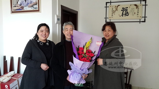 州中心医院为返聘老专顾珠凤家过生日