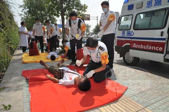 州中心医院是恩施州唯一一家三级甲等医院,也是全州120急救中心的挂靠单位,在承担全州突发事件和公共卫生事件应急救援方面有着不可替代的作用和不可推卸的责任。多年来,该院坚持以实战演练的方式不断提高应急救援、处置能力,保障人民的生命安全。
