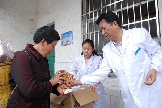 免费为前来看诊的留守儿童家长发放药品