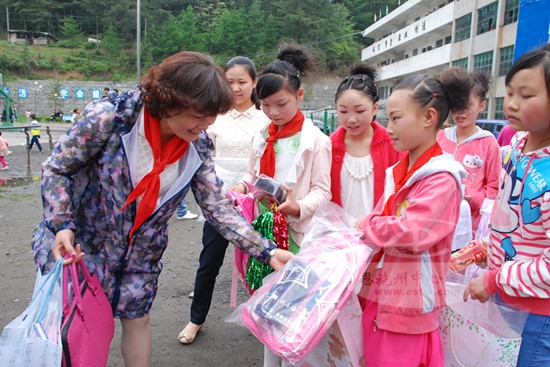 为留守儿童送上书包和文具盒