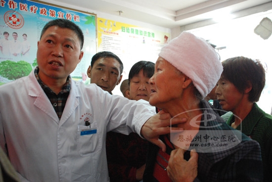 在10日举行的义诊中,专家们仔细为前来问诊的群众们看诊检查、答疑解惑、分发药品。听闻州中心医院的专家们要来义诊,已经70岁的周大娘特地起了个大早,从几公里外的村子里赶来。当见到州中心医院消化内科主任贺建华时,周大娘格外激动。“去年我得了胃病到州中心医院住院治疗过,当时就是贺医生治好了我的病。没想到今天能在这见到他,真该好好感谢他。”贺建华仔细询问了周大娘一年来身体状况,为她作了相应检查,告诉周大娘她的病已经痊愈,身体恢复状况良好,并耐心地嘱咐了周大娘一些平时生活中的注意事项。在义诊的同时,专家们还轮流来到金果坪卫生院住院部病房内进行了查房,并就一些患者的病情与该卫生院的医生进行了交流和业务指导。