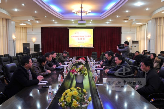 在汇报会现场,檀坤华一行观看了反映医院建设发展的专题片,听取了院长李拓、副院长杨兵关于医院情况和科研工作的详细汇报。檀坤华对该院悠久的历史文化和以先进医疗技术、优质服务质量为保障一方百姓健康而作出的重要贡献给予了充分肯定。