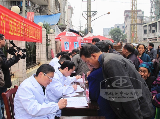 骨外科主任黄兆刚正在查看一位患者腿肿情况,不时做着一些保健示范动作;中医部外科主任田久双正在观察一位幼儿腹部;功能科副主任李柯则在镇卫生院内为病人做心脏彩超……此时,医生们问诊接连不断,护士们也无空档停手。“您血压100到180,请到那边作进一步诊断,莫大意!”护士查出高血压患者,便关切引导。“一次一片,一天两次,您要记清楚哦!”负责发药的护士一脸认真。