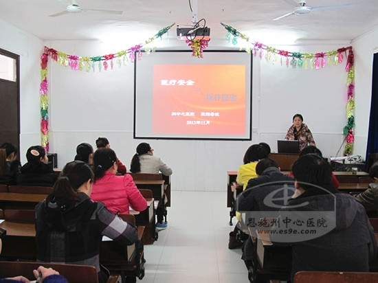 服务中心特聘护理部主任欧阳希波还检查了该镇卫生院护理记录,指出不足和改进方法,又于下午1点半向该院护理人员作了题为《医疗安全与医疗损害》的专题讲座。她从《医疗事故处理条例》、《侵权责任法》入手,结合具体案例,讲述了医疗护理工作职业道德要求和相关业务知识,要求大家增强责任意识和法律意识,注重细节,并鼓励大家向2005年感动中国的“照亮苗乡的月亮”——村医李春燕学习……