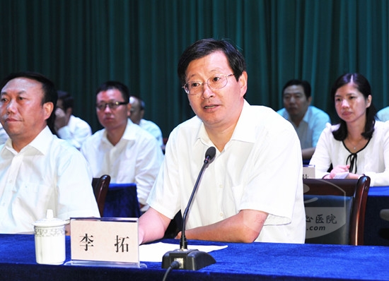 李拓在讲话中说,州中心医院全面托管来凤县中心医院和成立龙凤医疗服务中心,得到了州委、州政府主要领导的充分肯定和支持。这是一种全新的合作方式,旨在充分发挥恩施州中心医院的品牌、管理、技术优势和来凤县医疗卫生资源的区位优势,在国家建设武陵山区的历史背景下,实现强强联合,优势互补。这不是一家医院兼并另一家医院,不是一方“吃掉“另一方,而是谋求合作共赢、共同发展。三级公立医院以各种形式支持帮扶县市级公立医院,是湖北省卫计委深化全省医疗卫生体制改革的具体要求,是新形势下创新医疗服务模式的有益探索,同时也是一种新生事物,对此深感责任重大、使命光荣、前景光明。他表示,州中心医院将按照医改精神和各级领导的要求,积极探索,勇于创新,力争尽快将来凤县中心医院建设成为一所龙凤示范区群众满意、全院职工安心、县委县政府放心、具有三级医院实力的医院,为将龙凤示范区建设成为全国跨省经济协作示范区、全国贫困地区扶贫攻坚示范区、武陵山片区重要城市和经济增长极、国际知名生态文化旅游区、全国民族团结进步示范区作出应有的贡献。