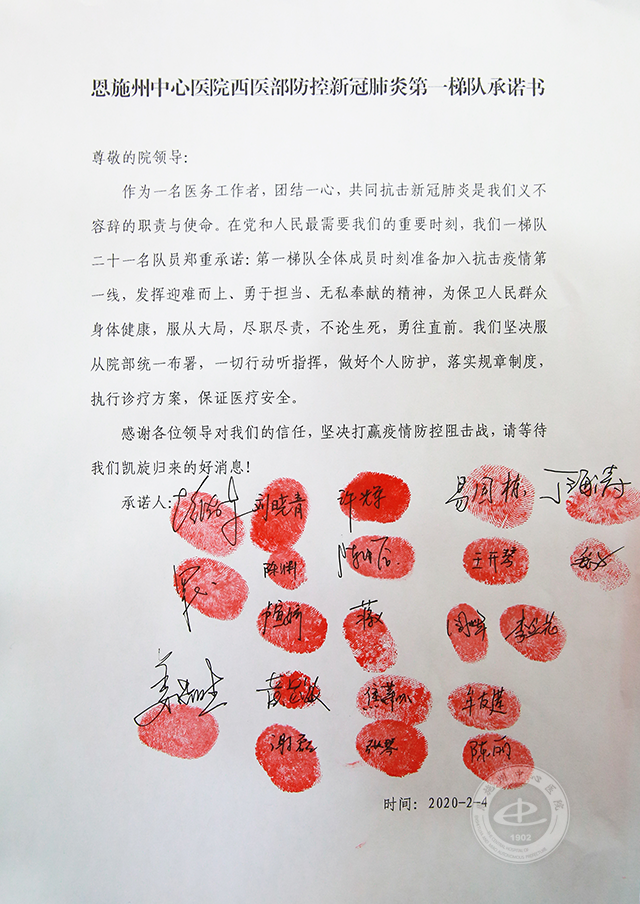 2020年1月29日,新冠疫情刚刚爆发,恩施州中心医院设备科干事徐先顺应召前往武汉蔡甸参与火神山医院建设。2020年2月5日上午,恩施州中心医院21名临床科室医护人员整装出发,进驻恩施“火神山”医院——恩施慧宜中西医结合风湿医院,加入到抗击“新冠”肺炎疫情的这场看不见硝烟的防控战之中。